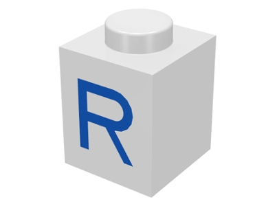 Brick 1 x 1 with Blue Capital Letter R Pattern