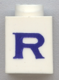 Brick 1 x 1 with Blue Capital Letter R Pattern (Serif Font)