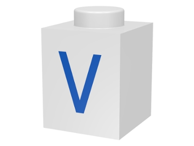 Brick 1 x 1 with Blue Capital Letter V Pattern