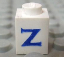 Brick 1 x 1 with Blue Capital Letter Z Pattern (Serif Font)
