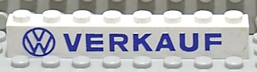 Brick 1 x 8 with Blue 'VW VERKAUF' Pattern