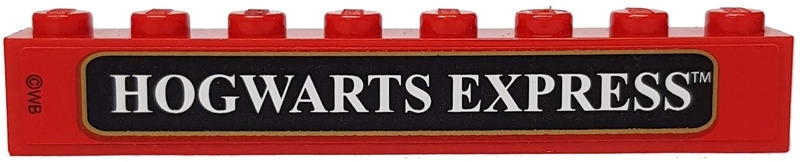 Brick 1 x 8 with White 'HOGWARTS EXPRESS' on Black Background with Gold Border and '©WB' Pattern (Sticker) - Set 4708