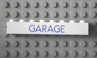 Brick 1 x 8 with Blue 'GARAGE' Sans-Serif Thin Pattern