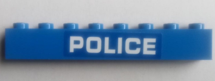 Brick 1 x 8 with White 'POLICE' on Blue Background Pattern (Sticker) - Set 60209