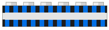 Brick 1 x 6 with Ferry Squares Light Blue and Black in 2 Lines Pattern