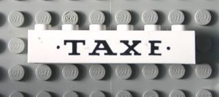 Brick 1 x 6 with Black 'TAXE' and Dots Small Pattern
