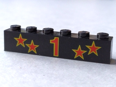 Brick 1 x 6 with Red Number 1 and Stars with Yellow Border Pattern