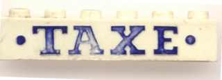 Brick 1 x 6 with Blue 'TAXE' and Dots Bold Pattern
