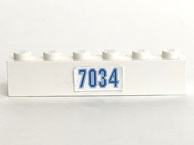 Brick 1 x 6 with Blue '7034' Pattern (Sticker) - Set 7034