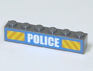 Brick 1 x 6 with White 'POLICE' Bold Narrow Font and Yellow Diagonal Stripes on Blue Pattern (Sticker) - Set 7743