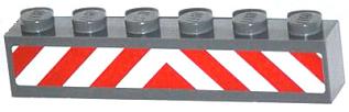 Brick 1 x 6 with Red and White Danger Stripes Pattern (Sticker) - Set 60061