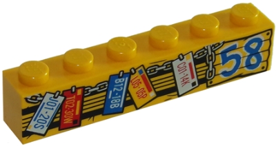 Brick 1 x 6 with '58' and Hanging License Plates Pattern