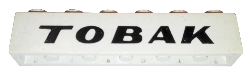 Brick 1 x 6 with Black 'TOBAK' Italic Bold Pattern