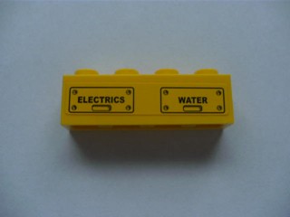 Brick 1 x 4 with 'ELECTRICS' and 'WATER' and Bolts Pattern (Sticker) - Set 7633