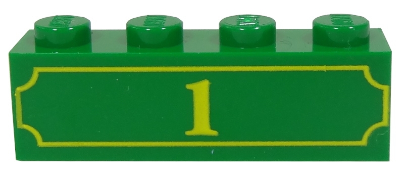 Brick 1 x 4 with Yellow '1' and Fancy Outline Pattern
