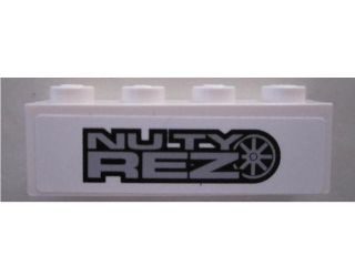 Brick 1 x 4 with 'NUTY REZ' on White Background Pattern (Sticker) - Set 8495