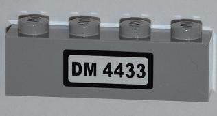 Brick 1 x 4 with 'DM 4433' on White Background Pattern (Sticker) - Set 4433