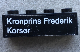 Brick 1 x 4 with 'Kronprins Frederik Korsør' Pattern, 'Korsør' on Left (Sticker) - Set 1660