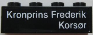 Brick 1 x 4 with 'Kronprins Frederik Korsør' Pattern, 'Korsør' on Right (Sticker) - Set 1660