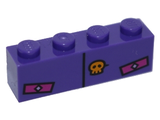 Brick 1 x 4 with Black Line, Bright Light Orange Skull and Magenta Rectangles Pattern (BrickHeadz The Joker Abdomen)