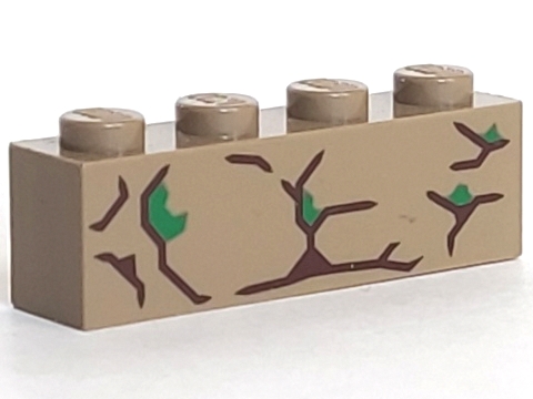 Brick 1 x 4 with Reddish Brown Cracks with Green Highlights Pattern #2 (BrickHeadz Groot Chest)