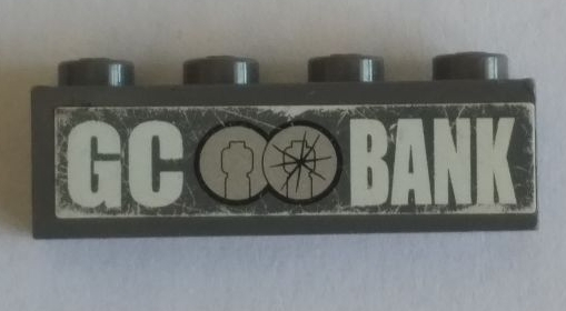 Brick 1 x 4 with White 'GC BANK' Logo on Dark Bluish Gray Background Pattern (Sticker) - Set 7781