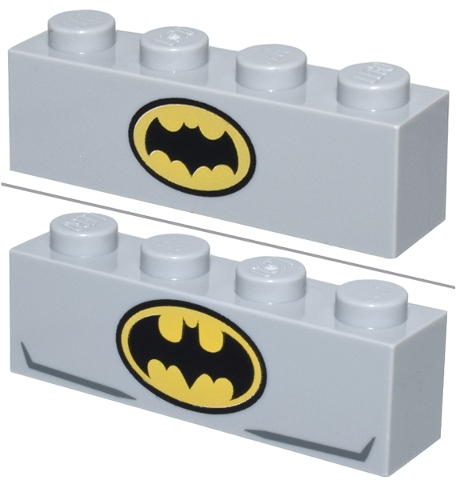 Brick 1 x 4 with Yellow and Black Batman Bat Logo Small / Large with Dark Bluish Gray Lines Pattern (BrickHeadz Batman (Classic TV Series / Bronze Age) Chest)