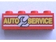 Brick 1 x 4 with Yellow 'AUTO SERVICE', White Lines, and Wrench Pattern