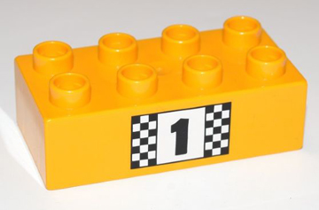 Duplo, Brick 2 x 4 with Number 1 and Black and White Checkered Pattern