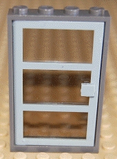 Door, Frame 1 x 4 x 6 with 4 Holes on Top and Bottom with Light Gray Door with 3 Panes and Square Handle with Fixed Trans-Brown Glass (30179 / x39c02)