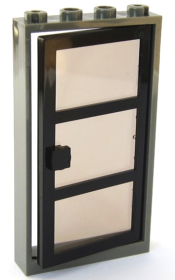 Door, Frame 1 x 4 x 6 with 4 Holes on Top and Bottom with Black Door with 3 Panes and Square Handle with Fixed Trans-Brown Glass (30179 / x39c02)