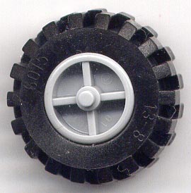 Wheel Center Wide with Stub Axles (Tricycle) with Black Tire 21mm D. x 12mm - Offset Tread Small Wide (30190 / 6015)