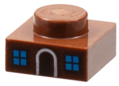 Plate 1 x 1 with Medium Azure Window Panes and White Doorframe Pattern (Gingerbread House)