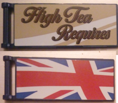 Flag 7 x 3 with Bar Handle with 'High Tea Requires' / Partial United Kingdom Flag (Union Jack) Pattern Model Front Left Side (Stickers) - Set 10258
