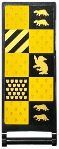 Flag 7 x 3 with Bar Handle with HP Hufflepuff House Banner, Black and Yellow Squares, Gold Shields, Stripes and Badgers Pattern on Both Sides (Stickers) - Set 76416