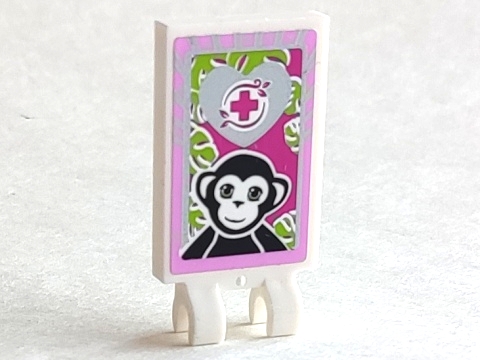 Tile, Modified 2 x 3 with 2 Clips with Black Monkey, Magenta Cross on Silver Heart, Bright Pink Border Pattern (Sticker) - Set 41058