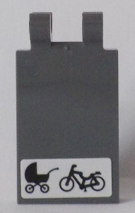 Tile, Modified 2 x 3 with 2 Clips with Black Baby Carriage and Bicycle on White Background Pattern (Sticker) - Set 60154