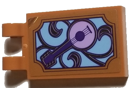 Tile, Modified 2 x 3 with 2 Open O Clips with Lavender Guitar with Dark Purple Strings and Medium Blue Swirls Pattern (Sticker) - Set 41193