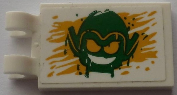Tile, Modified 2 x 3 with 2 Open O Clips with Green Goblin Head on Yellow Painted Background Pattern (Sticker) - Set 76057