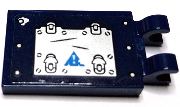 Tile, Modified 2 x 3 with 2 Open O Clips with Silver Panel, Latches and Rivets and Dark Azure Warning Triangle with Exclamation Mark Pattern Model Right Side (Sticker) - Set 70429