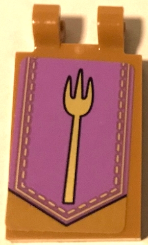 Tile, Modified 2 x 3 with 2 Open O Clips with Gold Fork on Medium Lavender Banner Background Pattern Model Right Side (Sticker) - Set 75826