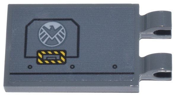 Tile, Modified 2 x 3 with 2 Open O Clips with Panel with White Eagle Shield Logo and Black and Yellow Danger Stripes Pattern Model Right Side (Sticker) - Set 76269