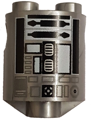 Brick, Round 2 x 2 x 2 Robot Body with Bottom Axle Holder (x Shape / + Orientation) with Black and White Pattern (SW R2-Q2)