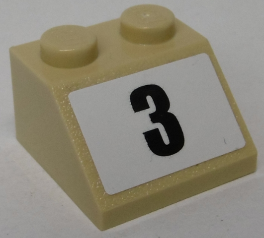 Slope 45 2 x 2 with Black Number 3 on White Background Pattern (Sticker) - Set 8864