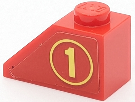 Slope 45 2 x 1 with Bright Light Yellow Number 1 in Circle Pattern Model Right Side (Sticker) - Set 40347