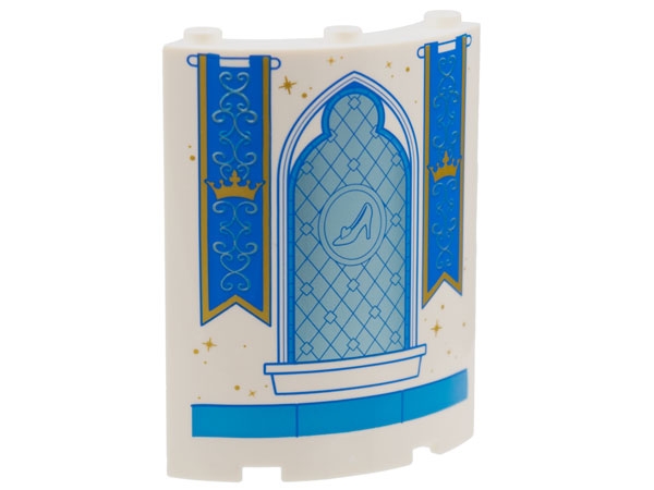Cylinder Quarter 4 x 4 x 6 with Metallic Light Blue Stained Glass Window with Glass Slipper and Blue Banners with Gold Crown Pattern