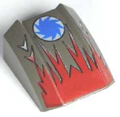Slope, Curved 2 x 2 Lip with Red Flames, Blue Saw Blade on White Circle Pattern