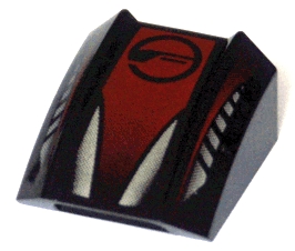 Slope, Curved 2 x 2 Lip with Silver and Red with Circle Pattern