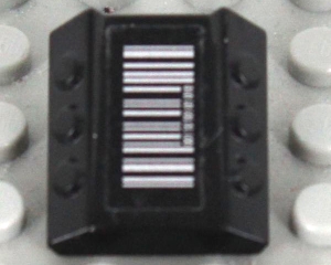 Brick, Modified 2 x 2 No Studs, Sloped with 6 Side Pistons Raised with Silver Barcode Pattern (Sticker) - Set 7713