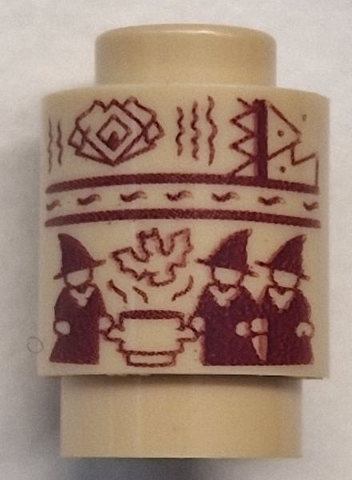 Brick, Round 1 x 1 with 3 Dark Red Witches, Kettle and Bat Pattern